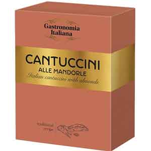 100 g Cantuccini, Almonds The cantuccini are distinguished by their crispy texture and rich, classic flavor. The delicate cookies have a pleasant nutty note from the almonds, while the honey adds a subtle sweetness. This combination makes them a flavorful treat that pairs perfectly with coffee or tea.