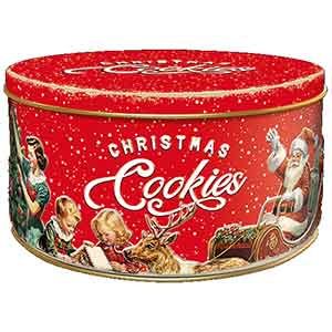 150 g Vintage Style Biscuit Tin with Caramel Biscuits The vintage-style cookie tin with caramel cookies is a true highlight for the holiday season. The delicate combination of crispy, golden-brown cookies and the unmistakable caramel flavor makes every bite a special experience. The elegant tin in nostalgic design not only offers stylish storage but also makes an ideal gift for friends and family. A treat that warms the heart and perfectly complements the festive mood.