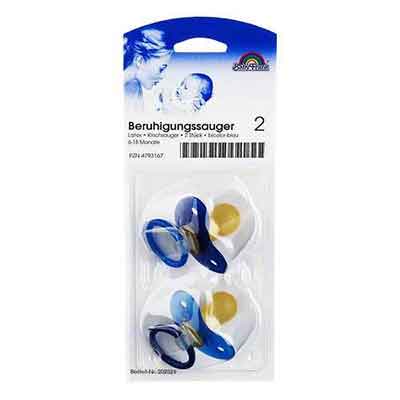 Baby Pacifiers, set of 2 Made of latex, two blue colored baby pacifier are great to soothe baby! Size 6-18 months