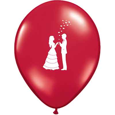 Red Wedding Balloon, bride and groomAn elegant red balloon with a charming bride and groom print – perfect for adding romantic touches to any wedding celebration. This balloon is delivered uninflated and works beautifully as a stylish decoration or a special addition to a wedding gift. Made of latex. ca. 28 cm