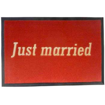 Doormat,Just Married This robust red doormat is perfect for the newlyweds, as it is inscripted with Just married!